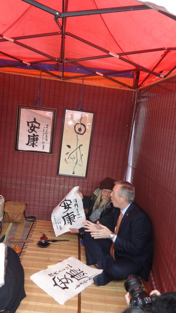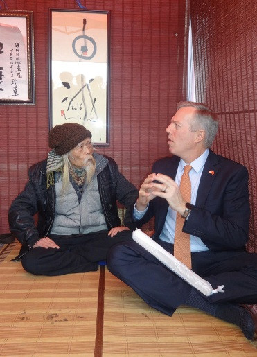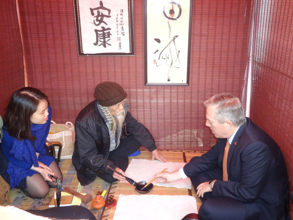 Trước khi kết thúc buổi viết thư pháp, ngài đại sứ Hoa Kỳ gửi lời cảm ơn đến thầy Lược, đến toàn thể mọi người. Đồng thời, ngài đại sứ cũng chúc mọi người, mọi nhà một năm mới bình an và khỏe mạnh.