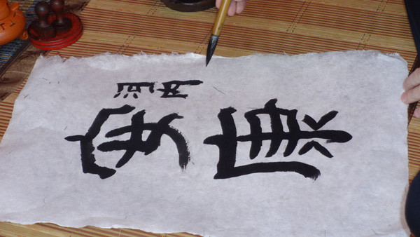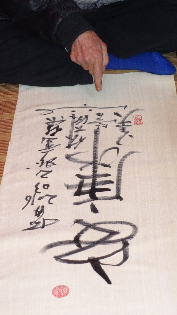 Vừa viết, ngài đại sứ vừa nghe thầy Lược giải thích về ý nghĩa của chữ, cũng như cách thể hiện các nét bút.
