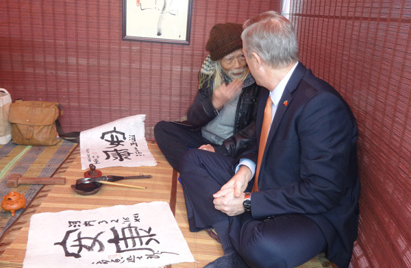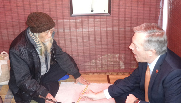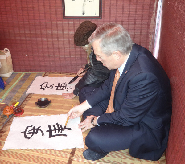 Cuộc gặp mặt diễn ra trong thân tình, vui vẻ. Được biết, trước đây ông Osius từng học viết thư pháp với thầy Lược.