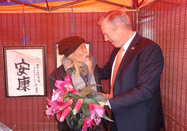 Thầy Lược tặng chữ "An Khang" cho ông Ted Osius cùng gia đình kèm theo lời chúc năm mới tốt lành nhất.