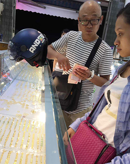 Một hướng dẫn viên du lịch Trung Quốc sử dụng đồng nhân dân tệ để mua hàng hóa. Ảnh: Hướng dẫn viên du lịch tiếng Trung cung cấp.