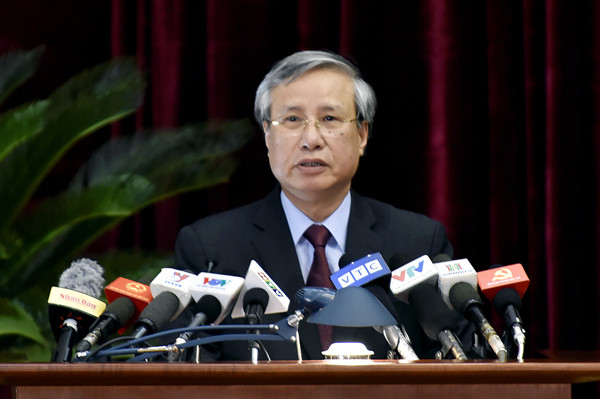 Thường trực Ban Bí thư Trần Quốc Vượng trình bày dự kiến chương trình Hội nghị Trung ương 7. Ảnh: VGP.