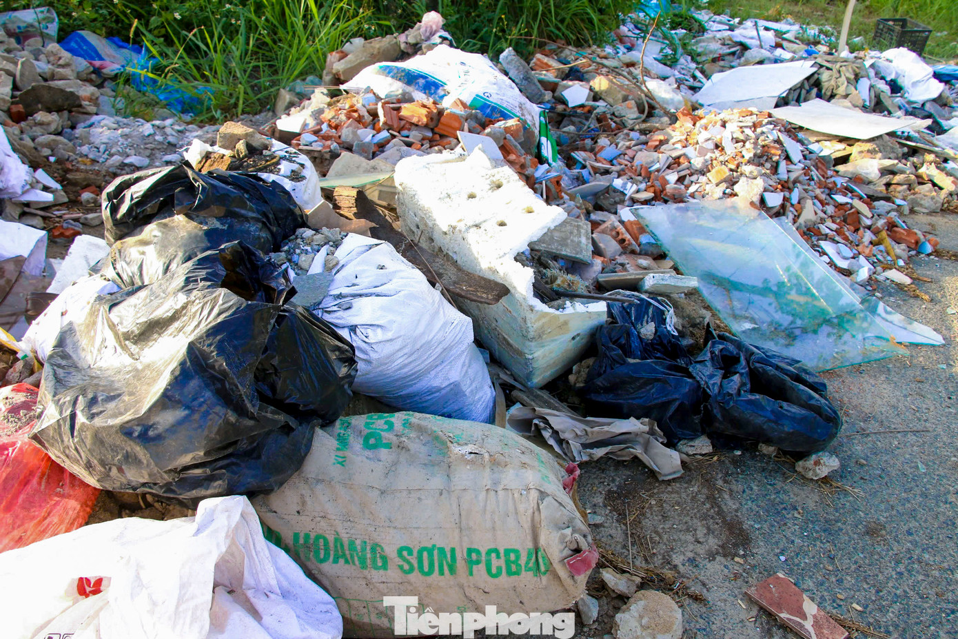 Ghi nhận của phóng viên Tiền Phong, khu vực ven đường dẫn lên Suối Đá xuất hiện hàng loạt xà bần, gạch đá, bao tải và rác thải sinh hoạt chất đống lộn xộn, kéo dài hàng chục mét. Những bãi rác này không được che chắn, bốc mùi hôi thối nồng nặc, ảnh hưởng trực tiếp đến môi trường sống của người dân trong khu vực.