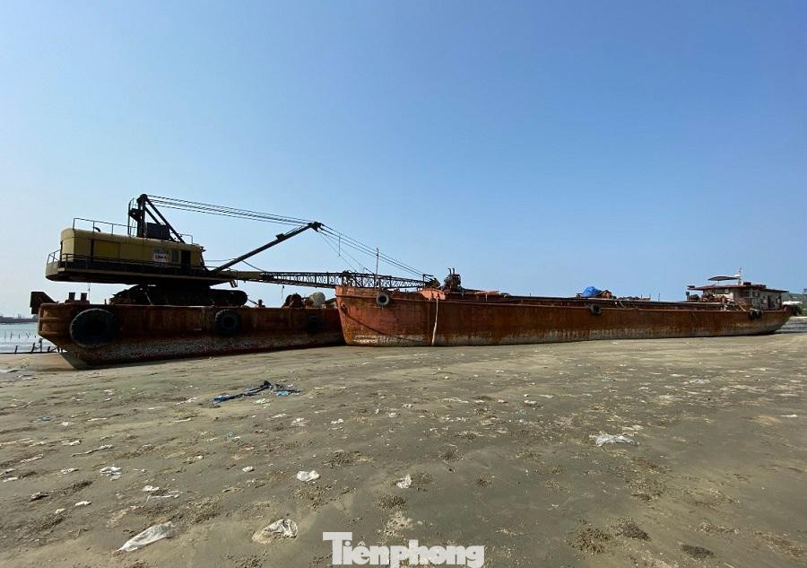 Theo ghi nhận của PV, ở vùng cảng biển Dung Quất thuộc Khu kinh tế Dung Quất có đến 5 phương tiện xà lan bị mắc cạn và chìm. Trong đó, 3 phương tiện mắc cạn tại bờ biển thôn Tuyết Diêm 2 thuộc sở hữu của công ty Hào Hưng và công ty Viet Ren. Hai phương tiện còn lại bị chìm tại khu vực cầu sông Đầm thôn thuộc Tuyết Diêm 1, chưa xác định được chủ sở hữu.