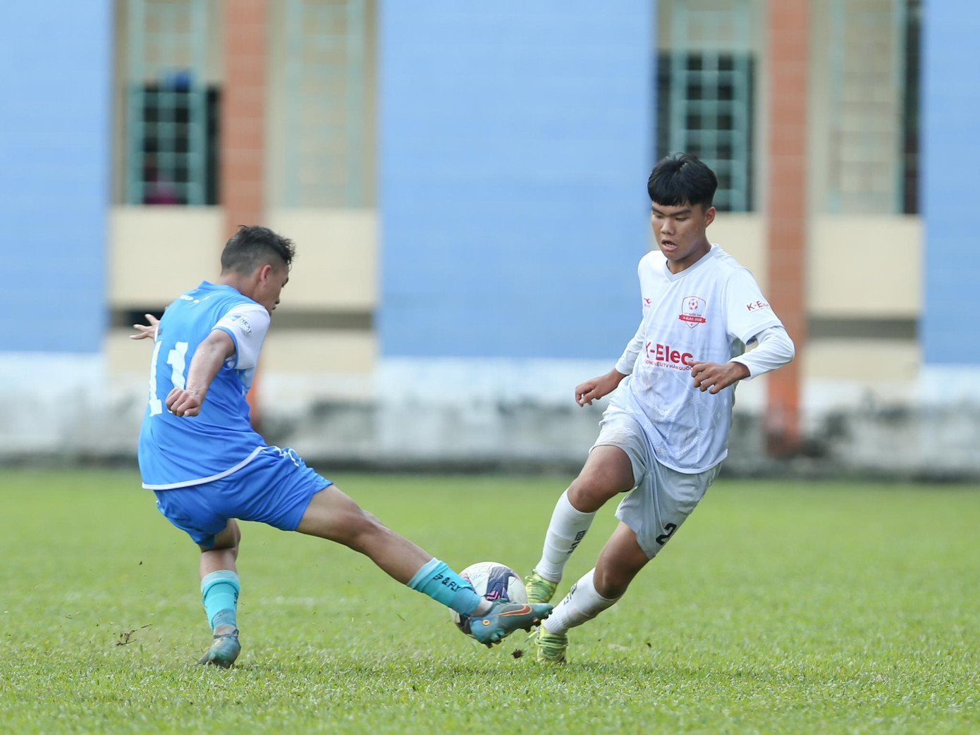 Trên sân số 1, U17 PVF có trận đấu dễ dàng ngay ở những phút đầu tiên. Đội bóng áo xanh làm chủ thế trận và triển khai tấn công bằng những pha phối hợp bài bản. U17 Phú Yên tỏ ra quá yếu thế trước ứng viên cho chức vô địch giải đấu năm nay.