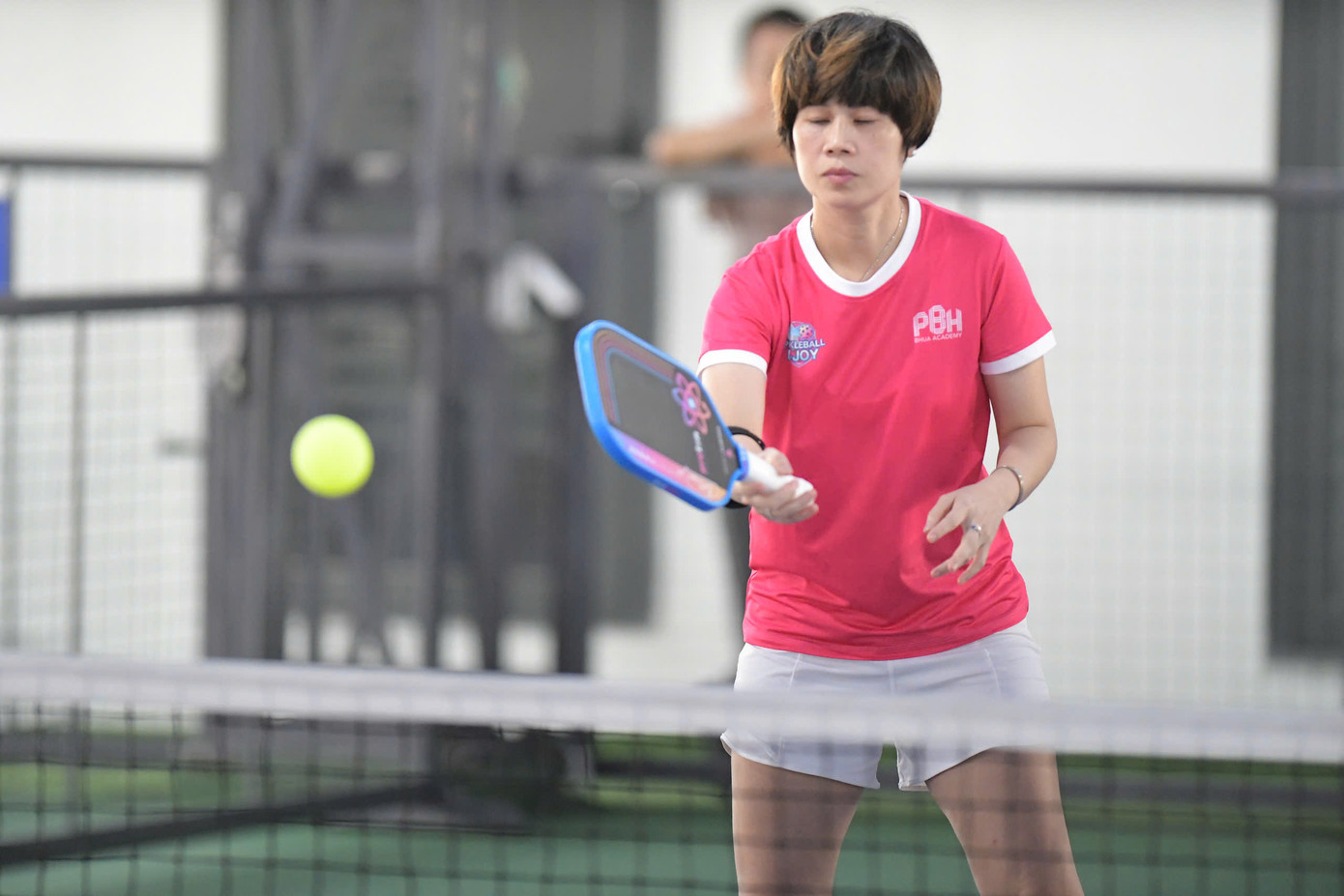 | "Trên sân pickkelball trông Hà rất căng thẳng", Đỗ Thị Hà cho biết, đồng thời rất hào hứng với những kinh nghiệm có được ở trận biểu diễn, mở màn Giải Vô địch Pickleball Việt Nam 2025. |