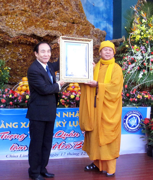 Ngày 17/12, được sự ủy quyền của Liên minh Kỷ lục Thế giới, Tổ chức Kỷ lục Việt Nam đã trao Bằng chứng nhận nói trên cho Thượng tọa Thích Tâm Vị, Trụ trì chùa Linh Phước.