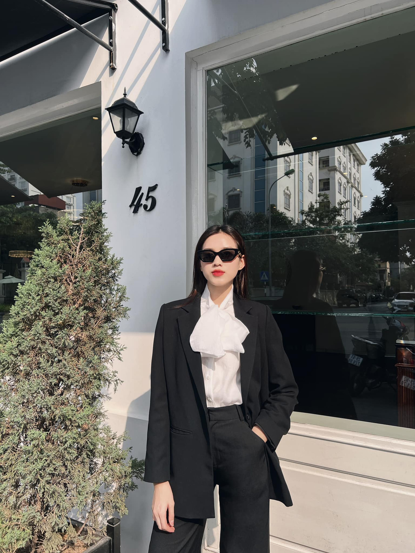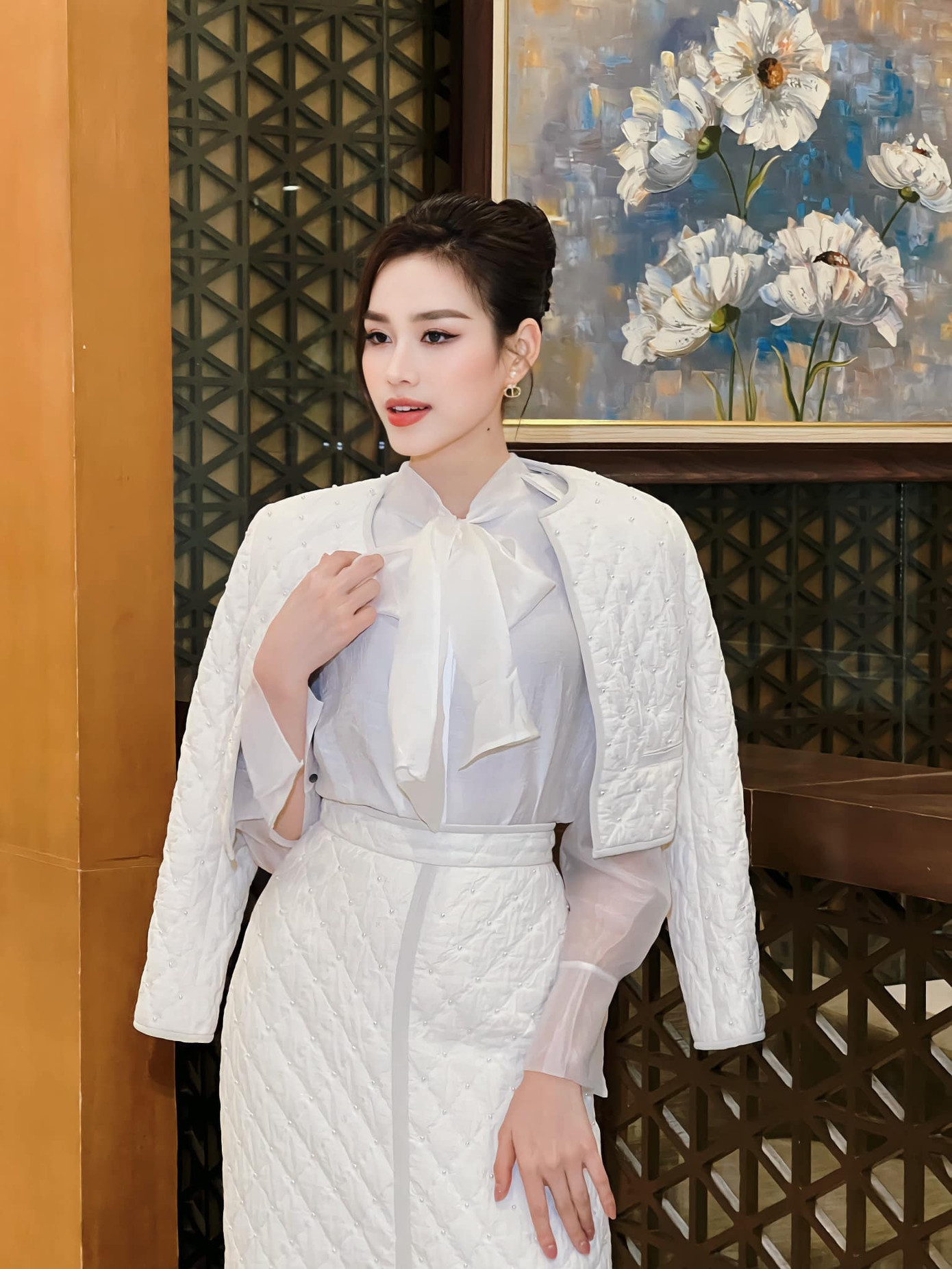 Đặc biệt nàng hậu không ngại biến hóa với những set đồ có màu sắc rực rỡ, giúp tôn lên làn da trắng mịn màng. Khi diện vest, Đỗ Thị Hà cũng tối giản phụ kiện, chọn kiểu tóc đơn giản để hợp với phong cách của nữ doanh nhân.