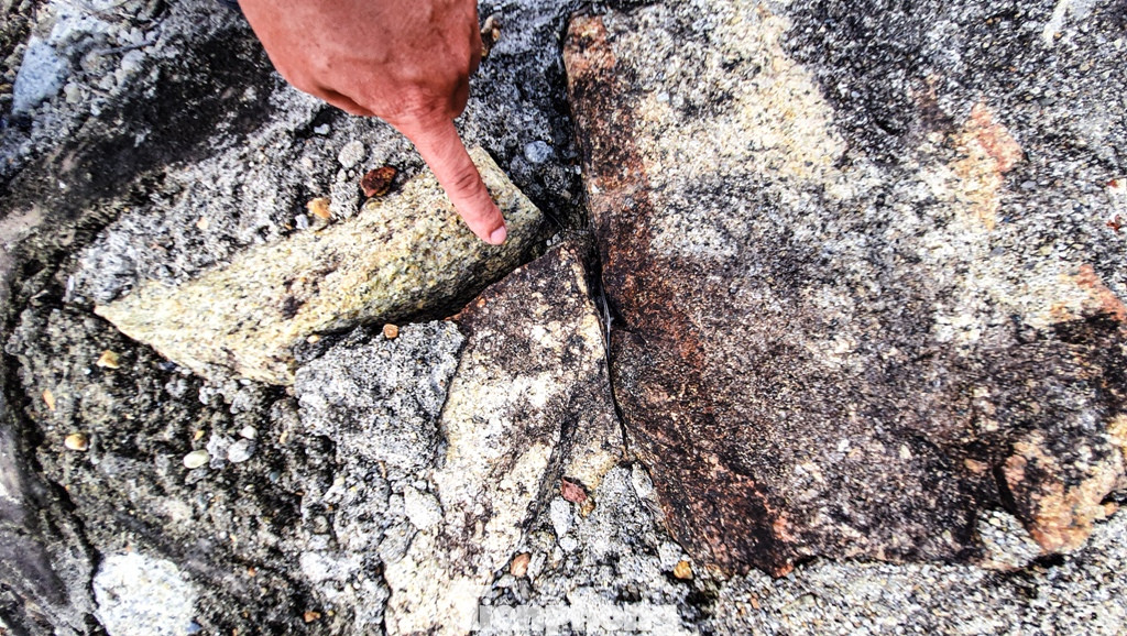 Trên thực tế, theo ghi nhận của PV, bờ kè đá có chức năng bảo vệ cụm trụ 2844 mà ông Đề đề cập ở trên hiện xuống cấp khá nặng. Phần vữa kết dính với đá hộc cấu tạo nên bờ kè đã tróc nứt, bong vỡ, tách hở ở nhiều vị trí.