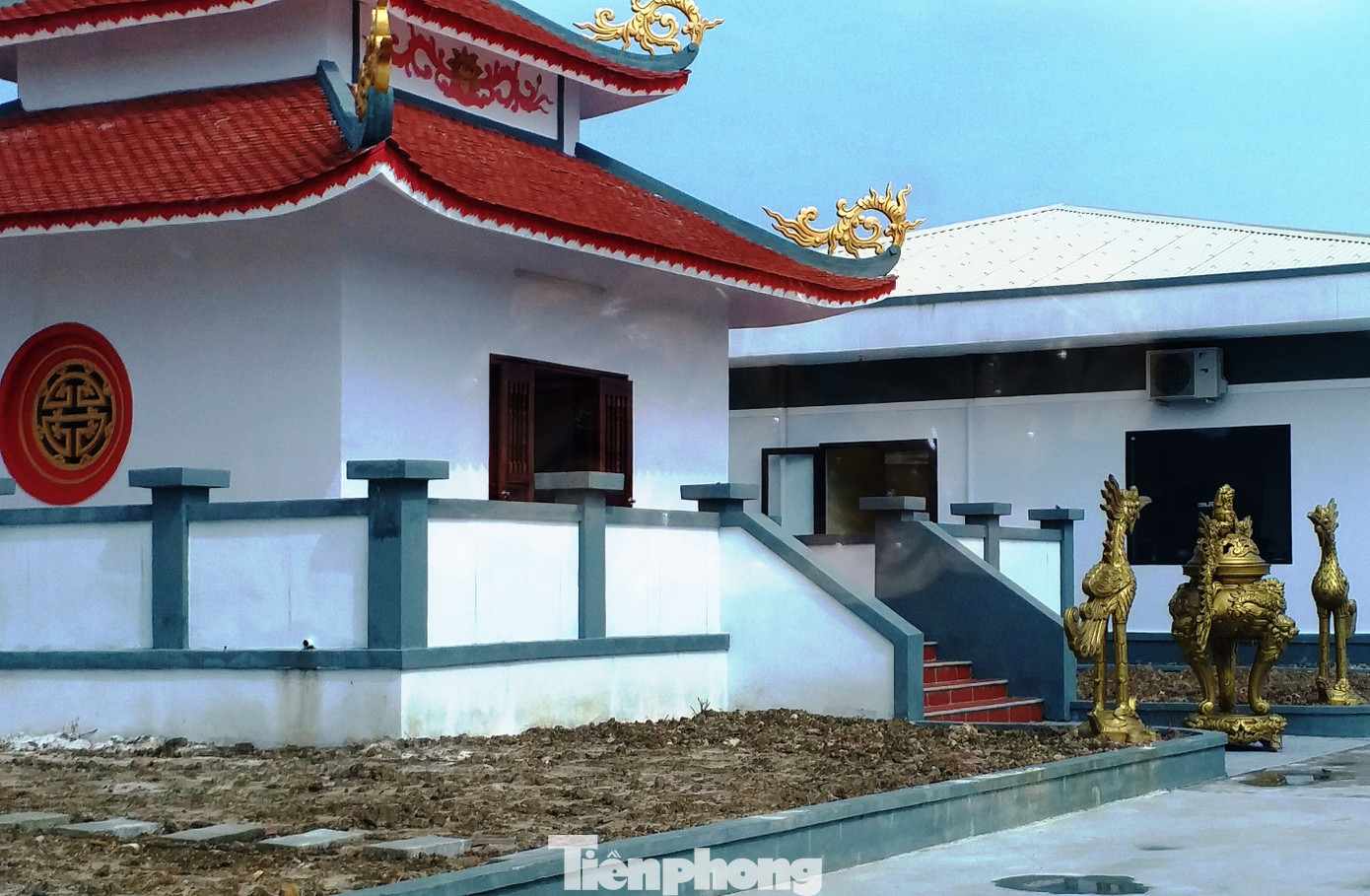Nhìn từ bên ngoài hàng rào, rất dễ nhận biết đây là một khu thờ tự độc lập. Theo thông tin từ ông Lê Đình Quý Sơn, Giám đốc Cty cổ phần Công nghệ Frit Phú Sơn, đây là công trình thờ Phật.