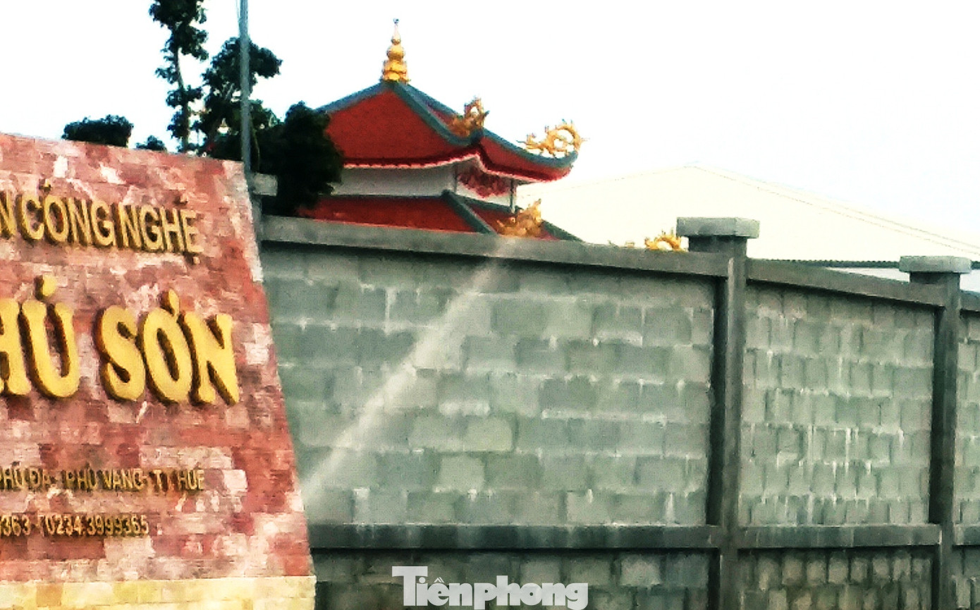 Mới đây, trong khuôn viên Nhà máy sản xuất men frit thuộc Công ty cổ phần Công nghệ Frit Phú Sơn (gọi tắt Cty Phú Sơn, tại Lô CN 17, Khu công nghiệp Phú Đa, huyện Phú Vang, tỉnh TT-Huế) bỗng xuất hiện một khu đền miếu, điện thờ bề thế với kết cấu kiên cố, kiến trúc giả cổ cùng những hạng mục phụ trợ bằng bê tông cốt thép.