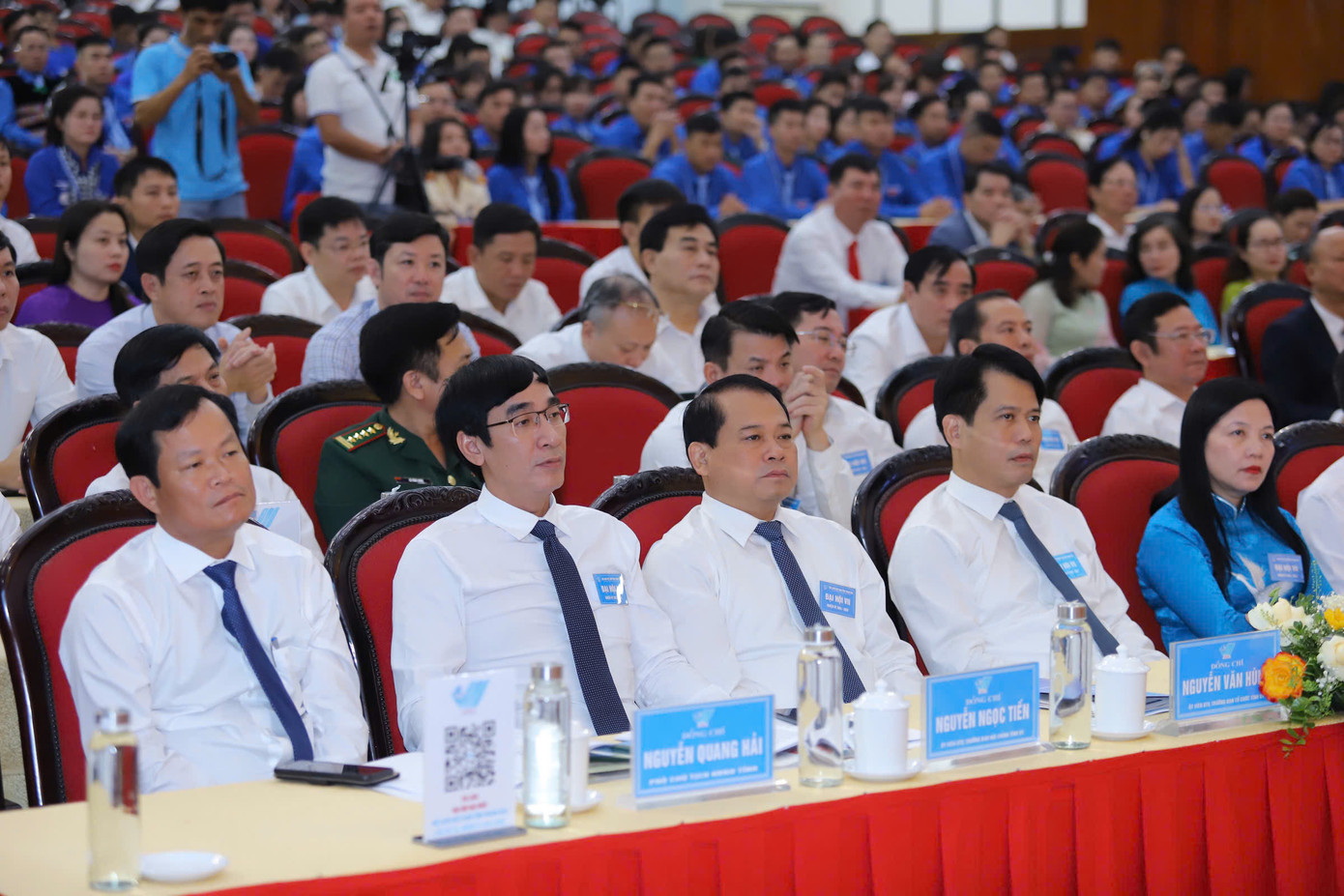 | Anh Ngô Văn Cương - Bí thư Ban Chấp hành Trung ương Đoàn, Chủ nhiệm Ủy ban Kiểm tra Trung ương Đoàn và ông Đỗ Minh Tuấn - Chủ tịch UBND tỉnh Thanh Hóa và các đại biểu tham dự đại hội. |