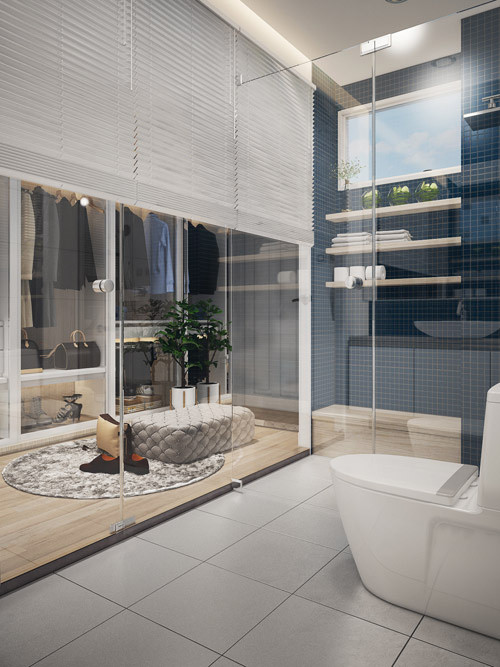 Thiết kế nhà hiện đại và tiện nghi đáp ứng nhu cầu của gia chủ. Phòng thay đồ rộng rãi ngay cạnh khu WC.