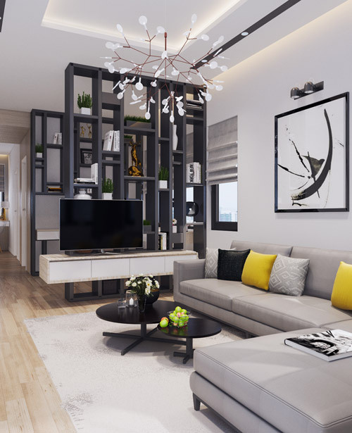 Những bức vách ngăn họa tiết nhẹ nhàng, cây cảnh đơn giản giúp cho không gian có cảm giác mềm mại hơn.
