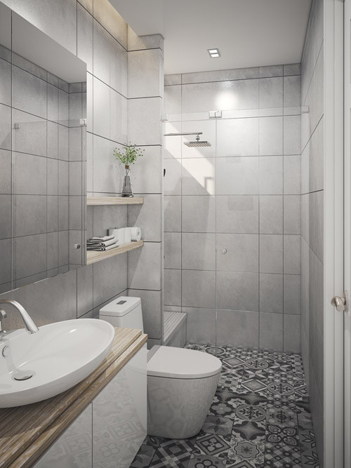 Các phòng WC nhỏ trong nhà có tông màu nhạt, khu tắm đứng tách biệt.