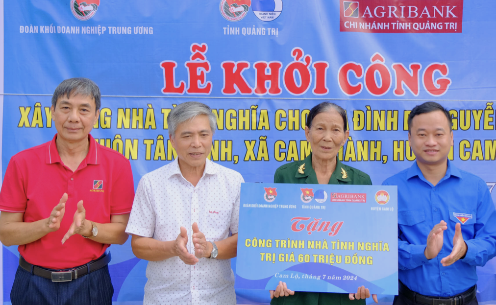 Nhân kỷ niệm 77 năm Ngày Thương binh-Liệt sĩ (1947-2024), ngày 27/7, Đoàn Khối Doanh nghiệp Trung ương, Tỉnh Đoàn Quảng Trị, Hội LHTN VN tỉnh Quảng Trị, Agribank Quảng Trị, Ủy ban MTTQ Việt Nam huyện Cam Lộ phối hợp tổ chức lễ khởi công xây nhà tình nghĩa cho gia đình cựu TNXP Nguyễn Thị Hồng ở thôn Tân Định, xã Cam Thành.