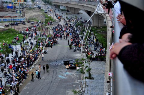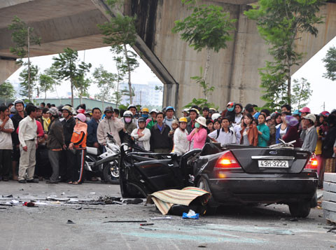 Rất đông người dân chứng kiến vụ tai nạn nghiêm trọng...