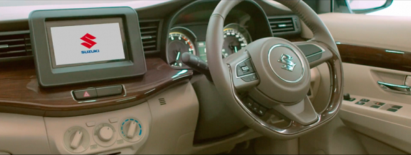 Còn phiên bản GX cao cấp nhất được trang bị thêm nội thất ốp gỗ, vô-lăng đa chức năng được bọc da và ốp gỗ, chìa khóa thông minh, nút bấm khởi động, bộ điều chỉnh chiều cao ghế, chỗ để cốc phía trước lỗ thống gió, và một màn hình cảm ứng 6,8 inch cùng với khả năng kết nối Bluetooth. Không giống như đa số các mẫu MPV mới khác trên thị trường, Suzuki Ertiga vẫn chỉ được trang bị 2 túi khí và bản GX có thêm hệ thống cân bằng điện tử ESP.