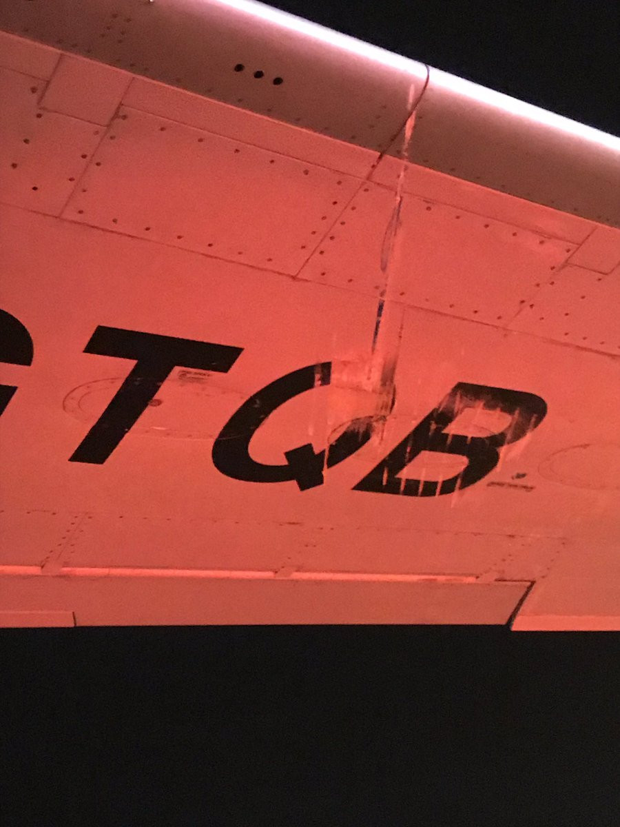 Cú va quệt tạo ra một tiếng động inh tai, khiến mặt dưới cánh máy bay bị hư hỏng nhẹ.