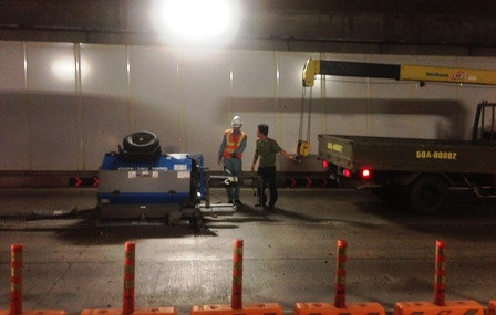 Khoảng 15h30 ngày 21/11, chiếc xe tải (loại cầu hàng) mang biển số xanh 50A-000.82 (bên hông cửa xe có dòng chữ Công an TPHCM) phía sau có rờ-mooc kéo theo một thiết bị khá lớn lưu thông qua hầm vượt sông Sài Gòn (hầm Thủ Thiêm) theo hướng từ quận 1 sang quận 2.