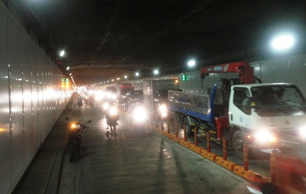 Xe biển xanh náo loạn hầm vượt sông lớn nhất Đông Nam Á