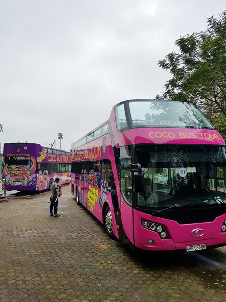 Anh Tùng, đội trưởng đội xe của Coco City Tour cho biết, sáng nay, các bên liên quan tiến hành kiểm tra, đo đạc xe. Mỗi xe có sức chứa 60 người bao gồm cả tài xế, trong đó tầng 1 chứa 15 người, tầng 2 chứa 45 người.