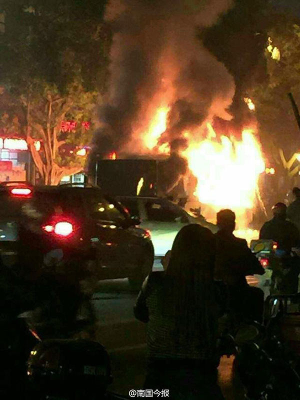 Các nhân chứng cho biết, chiếc xe buýt bốc cháy vào khoảng 18 giờ 20 phút ngày 21/11 khi chiếc xe này đang di chuyển trên đường Pingshan, thành phố Liễu Châu, Quảng Tây. Tại thời điểm xảy ra vụ việc, chiếc xe chở theo khoảng 40 đến 50 hành khách.