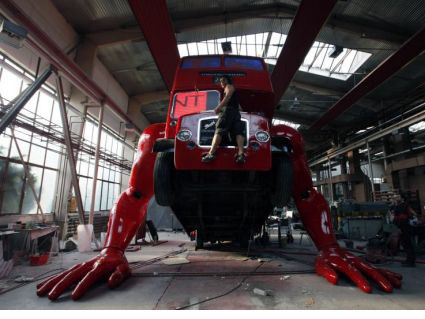 Cerny đã mua chiếc xe nặng 6 tấn tại Hà Lan trước khi gắn 2 cánh tay điện khổng lồ để chiếc xe có thể nâng lên hạ xuống giống một vận động viên đang chống đẩy.