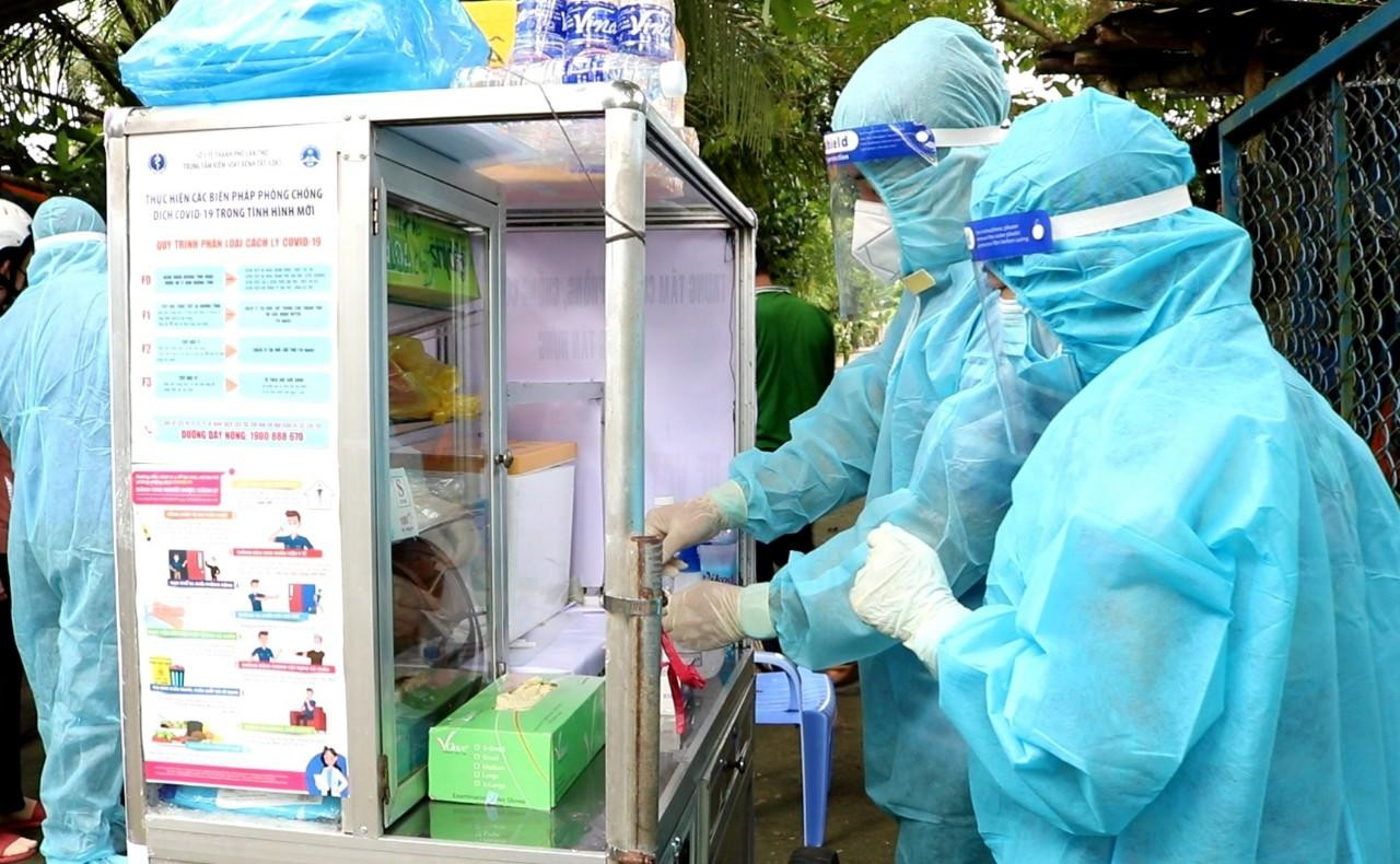 | Vị trí của người bán cá viên chiên trong mùa dịch được thay thế bằng nhân viên y tế - Ảnh: Kim Hà. |