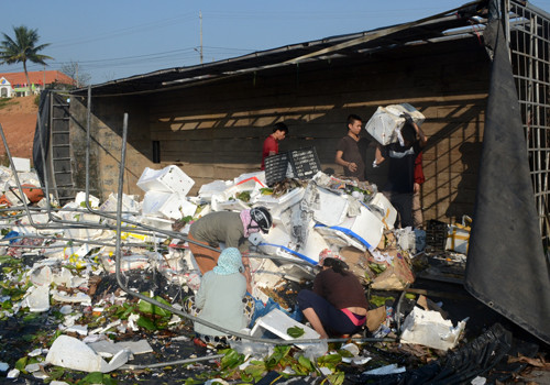 Trong khi cảnh sát điều tiết giao thông, khám nghiệm hiện trường, một số người dân đã giúp tài xế gom nhặt số hoa quả rơi vãi, chuyển lên xe tải khác để chở đến nơi giao hàng. 10h sáng cùng ngày, toàn bộ số hàng được thu gom gọn gàng.