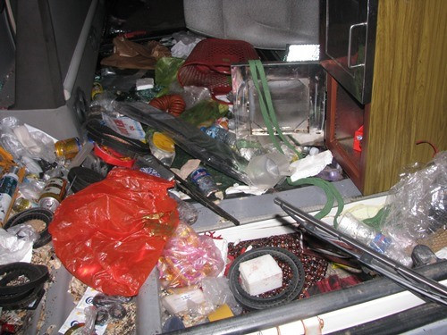 Tại hiện trường, xe bị lật nghiêng, kính vỡ bắn tung tóe, bên trong xe đồ đi lễ vương vãi khắp nơi. Lan can bên đường bị húc bay.