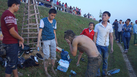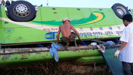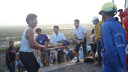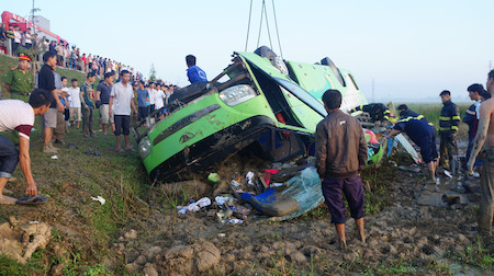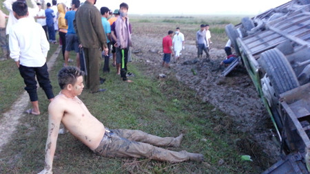 Cú đâm xuống ruộng với tốc độ lớn khiến chiếc xe lật ngửa, chổng 4 bánh lên trời, làm ít nhất 20/35 người trong xe bị thương. Sau khi xảy ra tai nạn, lãnh đạo BV 115 Nghệ An đã điều động nhiều xe đến hiện trường cùng đội ngũ y, bác sĩ cứu những người mắc kẹt trong xe.