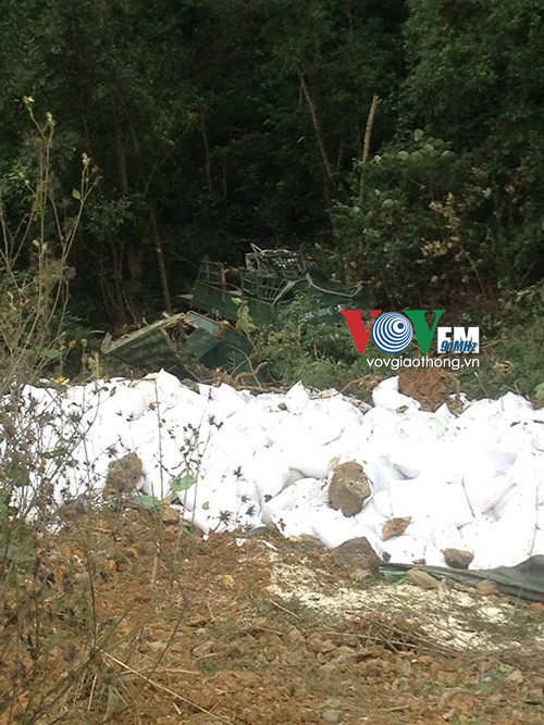 Vụ tai nạn đã làm chiếc xe bị hư hỏng hoàn toàn, hàng chục tấn gạo bị văng ra khỏi xe, vung vãi khắp vị trí xảy ra tai nạn, rất may tài xế xe tải đã nhảy ra khỏi xe nên thoát chết.