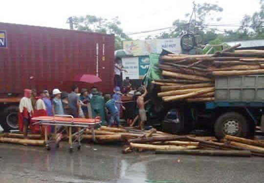 Do đầu chiếc xe tải chở gỗ bị biến dạng hoàn toàn, nên người dân phải mất hơn 1 tiếng đồng hồ dùng xà beng, gậy gỗ để phá cửa đưa tài xế bị mắc kẹt bên trong ra ngoài. May mắn hai tài xế chỉ bị thương.