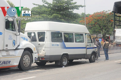 Lúc này, tài xế xe đầu kéo quyết định đánh lái cho xe lao vào dải phân cách nhằm giảm tốc độ,Tuy nhiên, chiếc xe chưa kịp va vào dải phân cách bên trái thì tông thẳng vào đuôi chiếc xe du lịch 16 chỗ mang BKS: 60C-0706 đang dừng đèn đỏ phía trước.