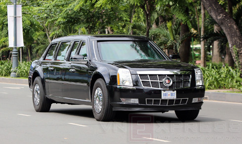 Khi Tổng thống Obama thăm Việt Nam hồi tháng 5, sở Mật vụ mang theo ít nhất 4 chiếc The Beast chia đều cho Hà Nội và Sài Gòn. Trong đoàn xe Tổng thống, bao giờ cũng có hai chiếc The Beast đi cạnh nhau, làm nhiệm vụ nghi binh và dự phòng. Trong ảnh: The Beast hiện tại của Obama.
