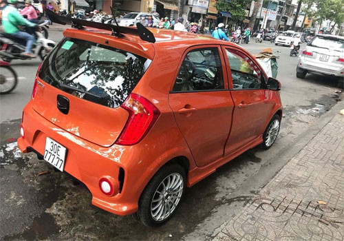 Xe sang biển số đẹp là chuyện bình thường ở Việt Nam, nhưng xe bình dân, vốn được gọi theo tiếng lóng là "xe cỏ" lắp biển số đẹp là hàng hiếm. Chiếc Kia Morning biển ngũ quý 7 ở Hà Nội. Mẫu xe cỡ nhỏ vốn có màu nguyên bản không phải cam, nhưng để tương xứng với biển số đẹp, chủ xe cho đi tân trang.