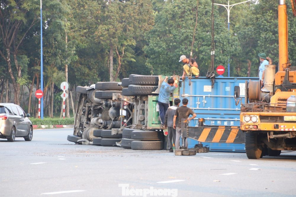 Theo ghi nhận của PV, ngay sau khi xảy ra vụ tai nạn, người đi đường đã chạy đến giải cứu tài xế ra khỏi cabin an toàn. Thời điểm xe đầu kéo container bị lật có nhiều phương tiện đang lưu thông nhưng may mắn không xảy ra thương vong.