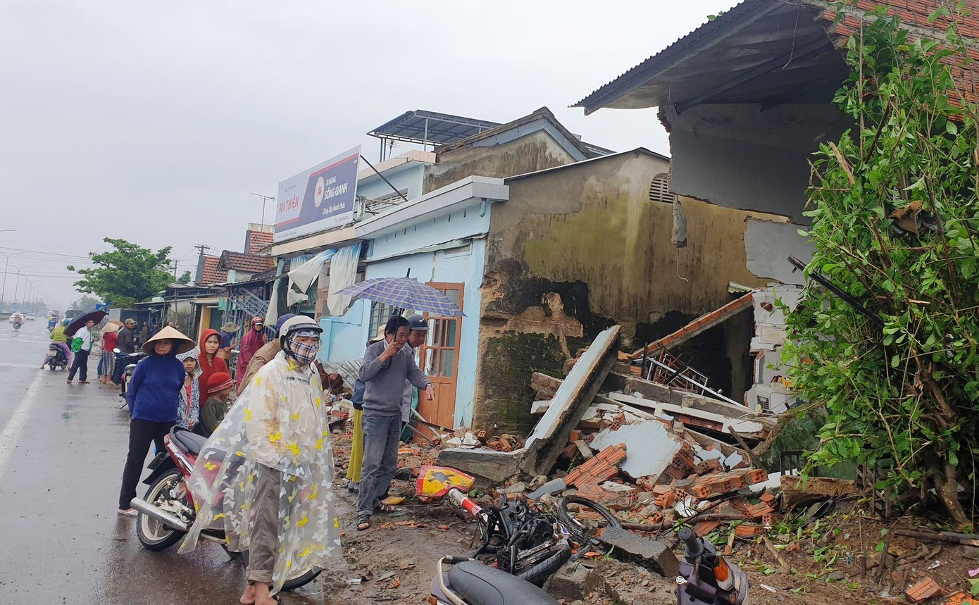 Chiếc xe container mất lái tông hàng loạt nhà dân ở Quảng Nam.