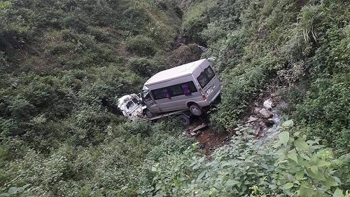 Tại hiện trường, chiếc xe cứu hộ nằm dưới vực sâu khoảng 20 m, đầu xe đâm vào vách núi và biến dạng hoàn toàn. Xe khách 16 nằm ở phía trên cũng bị hư hại.