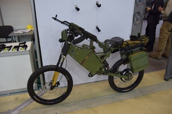 Mới đây ngành công nghiệp quốc phòng Nga đã tung ra loạt ảnh về một loại xe đạp điện phiên bản dùng cho quân đội, cảnh sát với khả năng tốc độ cao và đặc biệt là sự tích hợp một loạt vũ khí lợi hại ở ngay trên xe như súng trường, súng phóng lựu tự động và chống tăng.