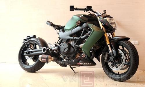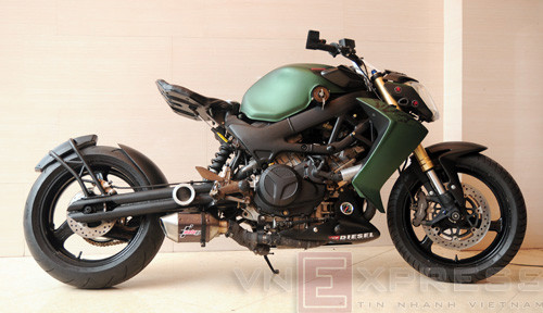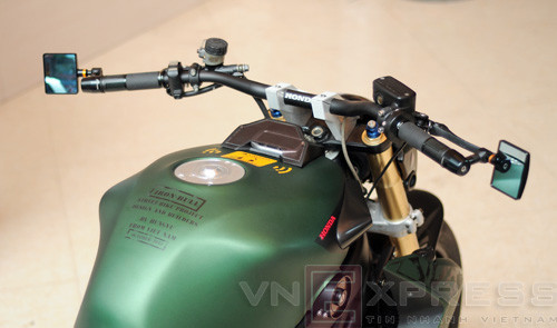 Bộ gá tay lái lấy cảm hứng từ Ducati Diavel cũng do chính tay chàng kiến trúc sư vẽ thiết kế và gửi bản vẽ vào Tp.Hồ Chí Minh để cắt CNC.