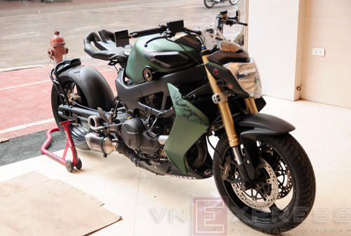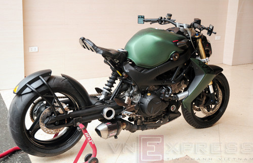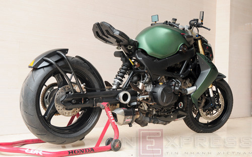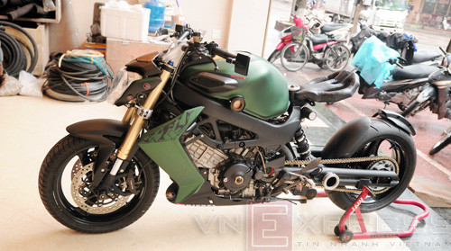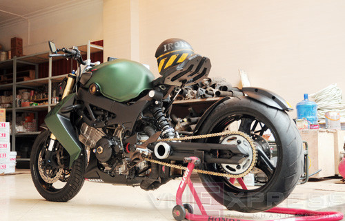 Chiếc Hond VTR1000F được chàng kiến trúc sư người Bắc Ninh độ lại với những điểm nhấn thiết kế ở càng sau, yên xe. Để rồi một chiếc xế độc Iron-Bull mang phong cách streetbike được “khai sinh” khiến không ít dân chơi xe trầm trồ.
