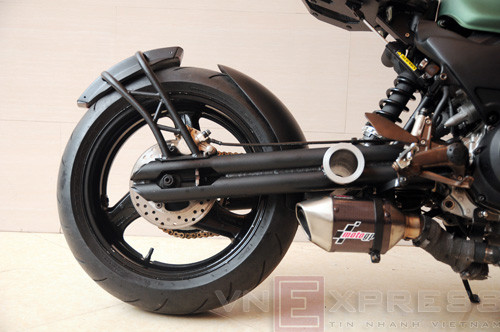 Toàn bộ các chi tiết như chắn bùn trước sau, ốp đèn pha, mỏ cày, ốp đồng hồ trên bình xăng và hai chi tiết đặc biệt hai bên bình xăng tạo điểm nhấn, đều được làm thủ công từ nhựa ống nước UPV. Yếm gom gió chế lại từ Yamaha Nouvo.