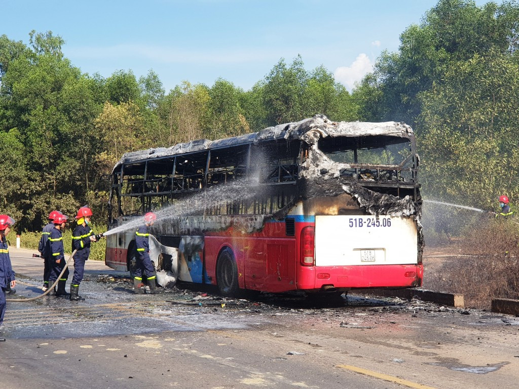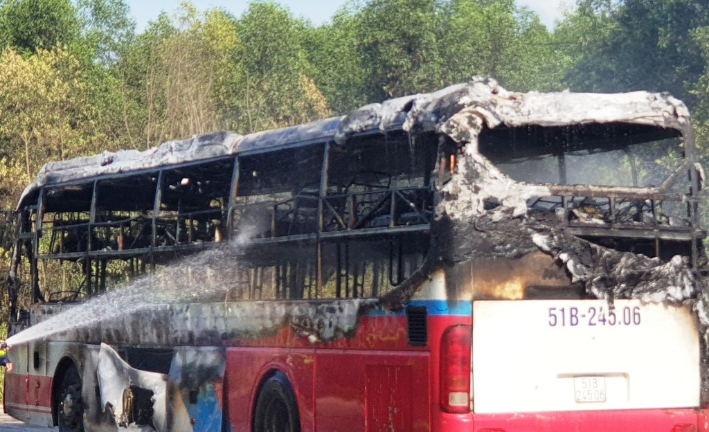 Tuy nhiên, toàn bộ xe giường nằm 51B-245.06 đã bị lửa lớn thiêu cháy, hư hỏng gần như hoàn toàn.