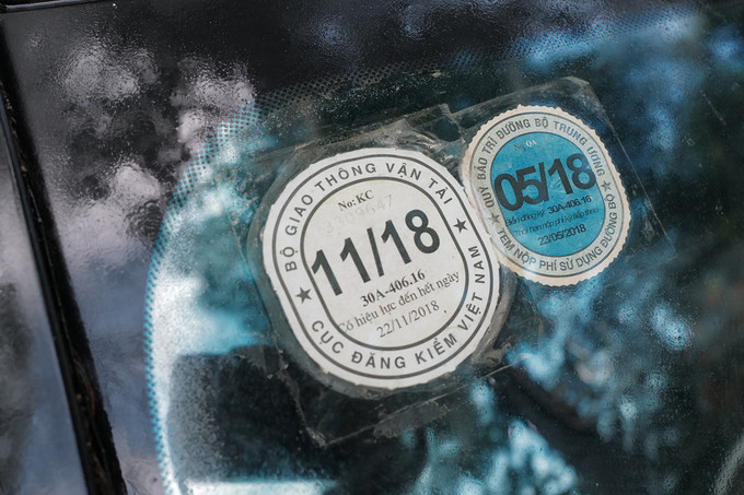 Tem đăng kiểm ghi thời gian hết hạn đăng kiểm vào tháng 11/2018, trong khi tem nộp phí sử dụng đường bộ chỉ đến tháng 5/2018.