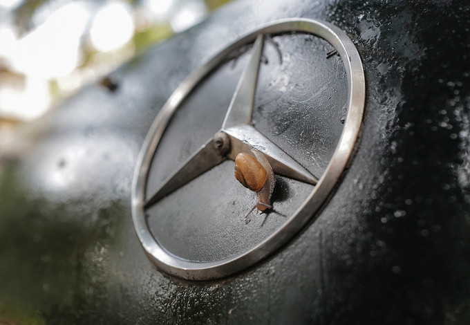 Chiếc sedan màu đen hiệu Mercedes nằm trên vỉa hè từ nhiều tháng qua và bị hư hại theo thời gian. Tương tự như số phận chiếc Bentley vô chủ ở khu chung cư An Sinh, Nam Từ Liêm.