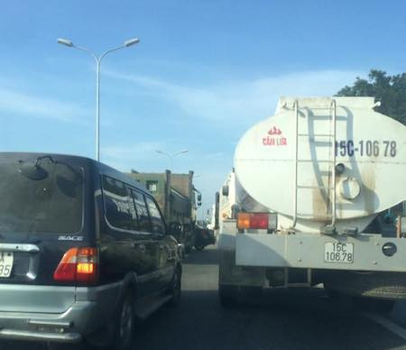 Giao thông ùn ứ trên quốc lộ 1A sau vụ tai nạn.