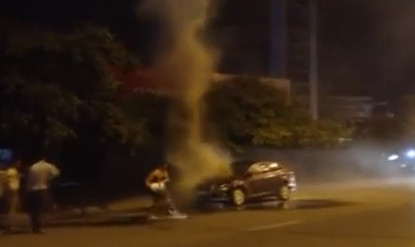 Vào thời điểm trên, chiếc xe ô tô mang BKS 29A-954.02 do một người đàn ông điều khiển lưu thông trên đường Trần Thái Tông đi Trung Kính. Khi đến trước số nhà 29D, chiếc xe này bất ngờ bốc cháy, khói lửa nghi ngút phần đầu xe.