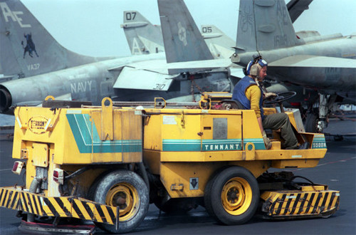 Động cơ phản lực dường như là của một chiếc Mig-15 cũ, sau đó được gắn thêm những chiếc ống hút. Những mảnh vụn lạ (FOD) là vấn đề lớn trên tàu sân bay. Một nút kim loại từ một chiếc áo hay một đai ốc nhỏ hoàn toàn có thể phá hủy một động cơ giá triệu đô, đồng thời gây nguy hiểm tới tính mạng của một thành viên trên tàu.